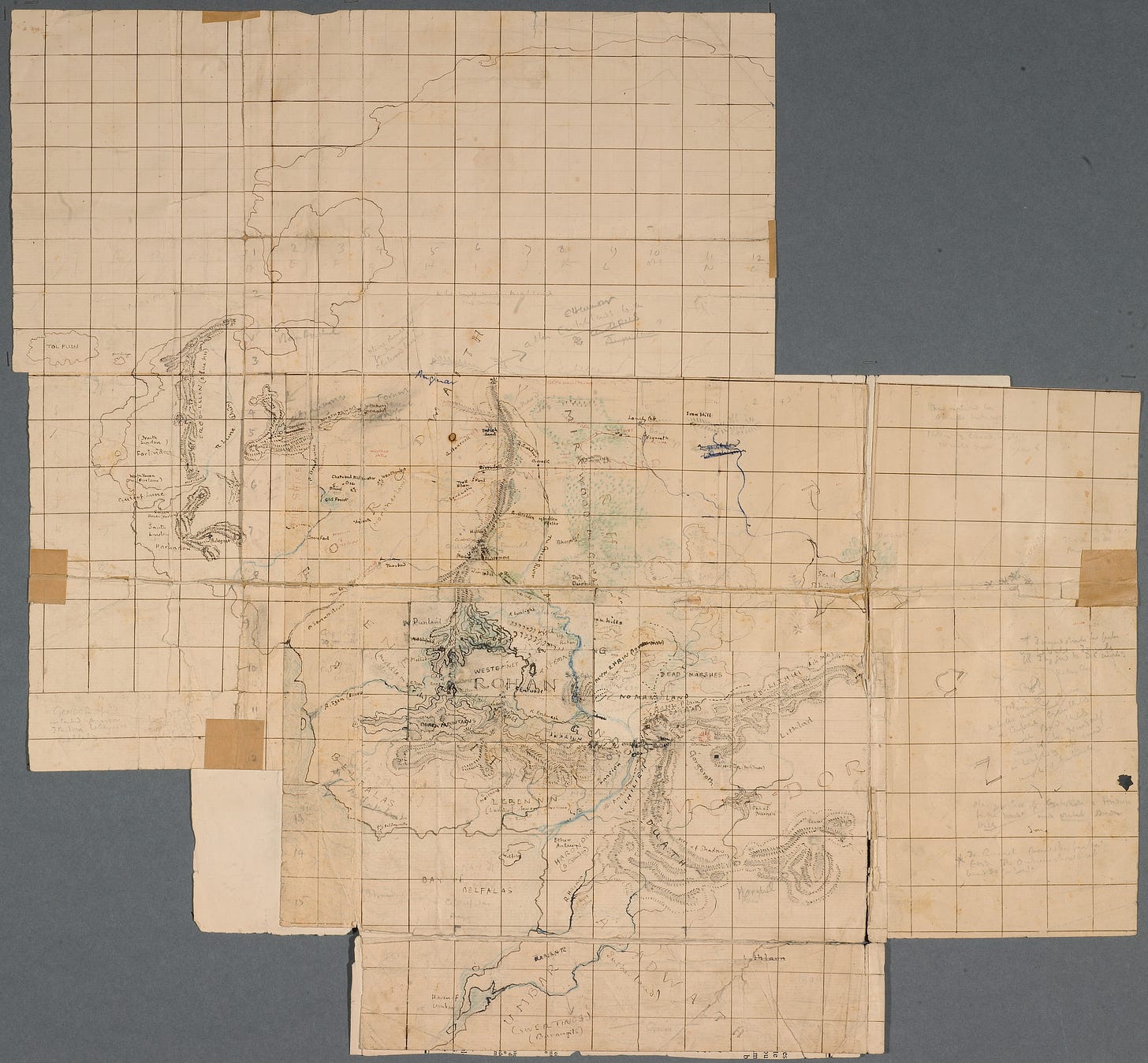 The first Silmarillion map, drawn by Tolkien on an unused page from a University of Leeds examination booklet.