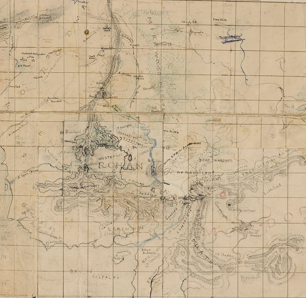 I love seeing things like this, as you might notice, Tolkien was adding pieces to the map as the story grew in the telling (you can see Rohan, Gondor, Mordor here).