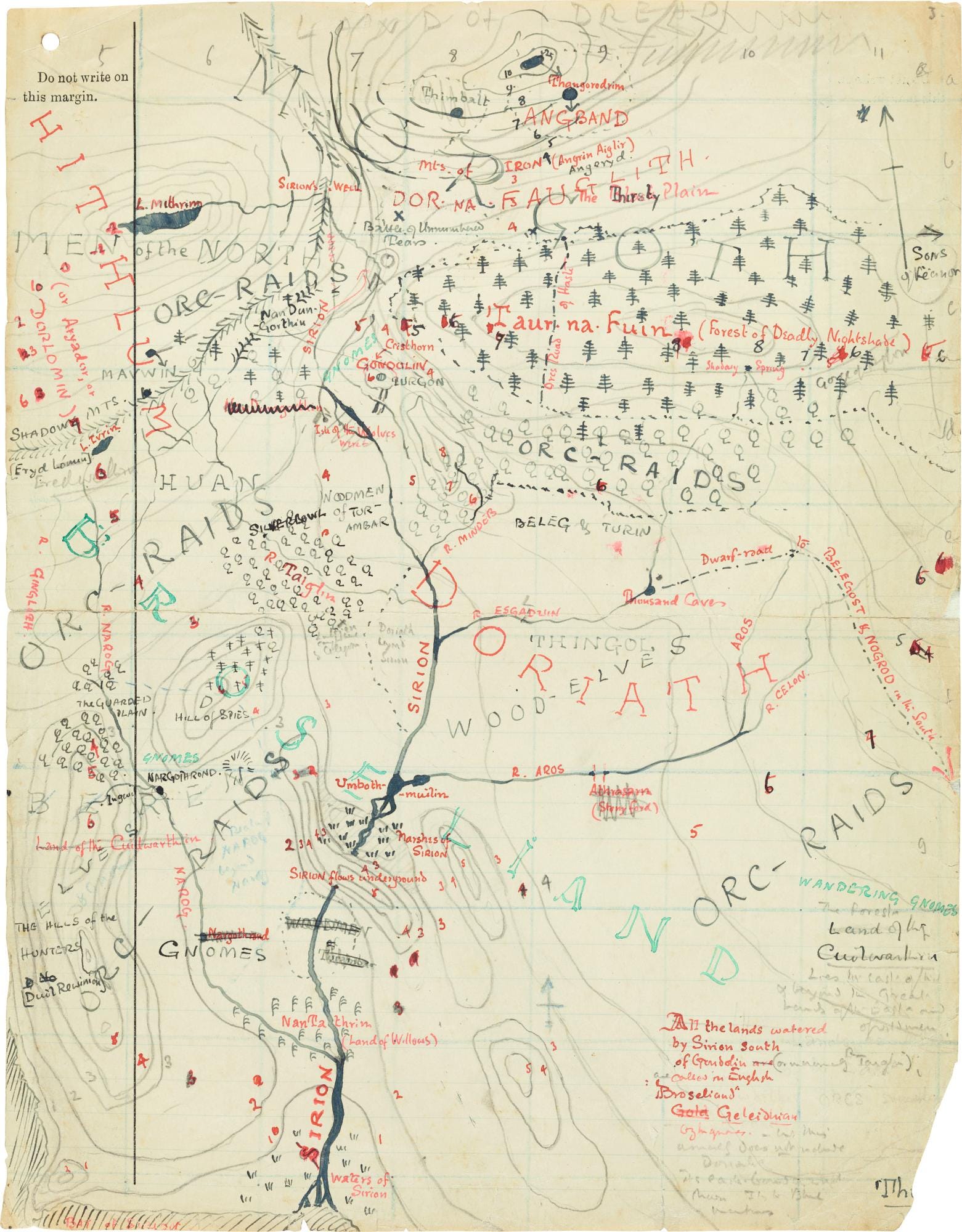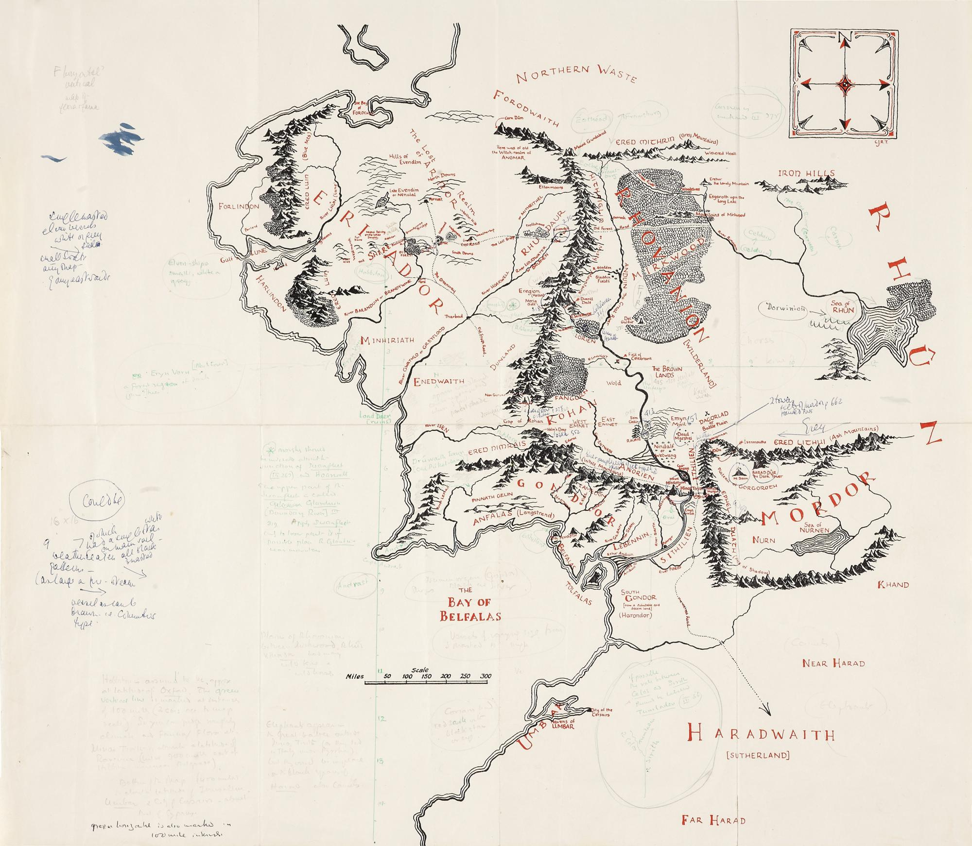 ‘Maps are worrying me. One at least (which would then have to be rather large) is absolutely essential. I think three are needed: 1. Of the Shire; 2. Of Gondor; and 3. A general small-scale map of the whole field of action. They exist, of course; though not in any form fit for reproduction – for of course in such a story one cannot make a map for the narrative, but must first make a map and make the narrative agree.’