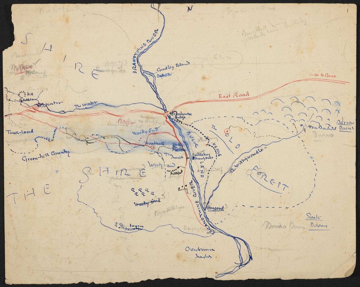 The earliest map drawn of The Shire for The Lord of the Rings in 1937 - this was one of the first things that he drew for the trilogy after writing The Hobbit.